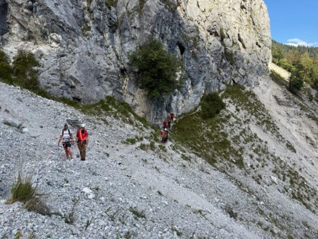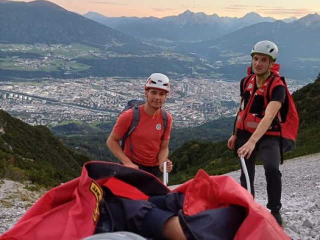 Klettersteig Innsbruck – Kemacher: Eine Person mit einer Sprunggelenksverletzung musste bei starkem Wind vom Grat geborgen werden.