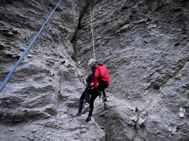 Zwei Szenarien wurden vorbereitet, die von den 24 Bergretterinnen und Bergrettern zu bewältigen waren: Eine Seilschaft war abgestürzt – der Kletterer hing noch im Seil in einem Felsüberhang, während der Sicherer schwer verletzt am Boden lag.