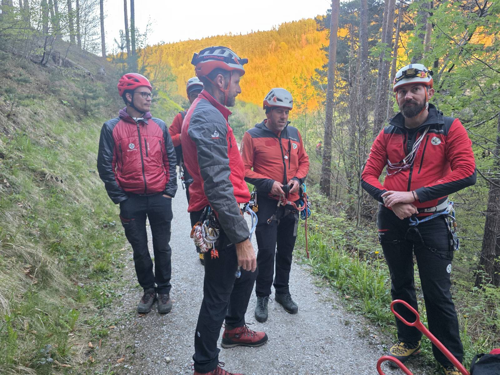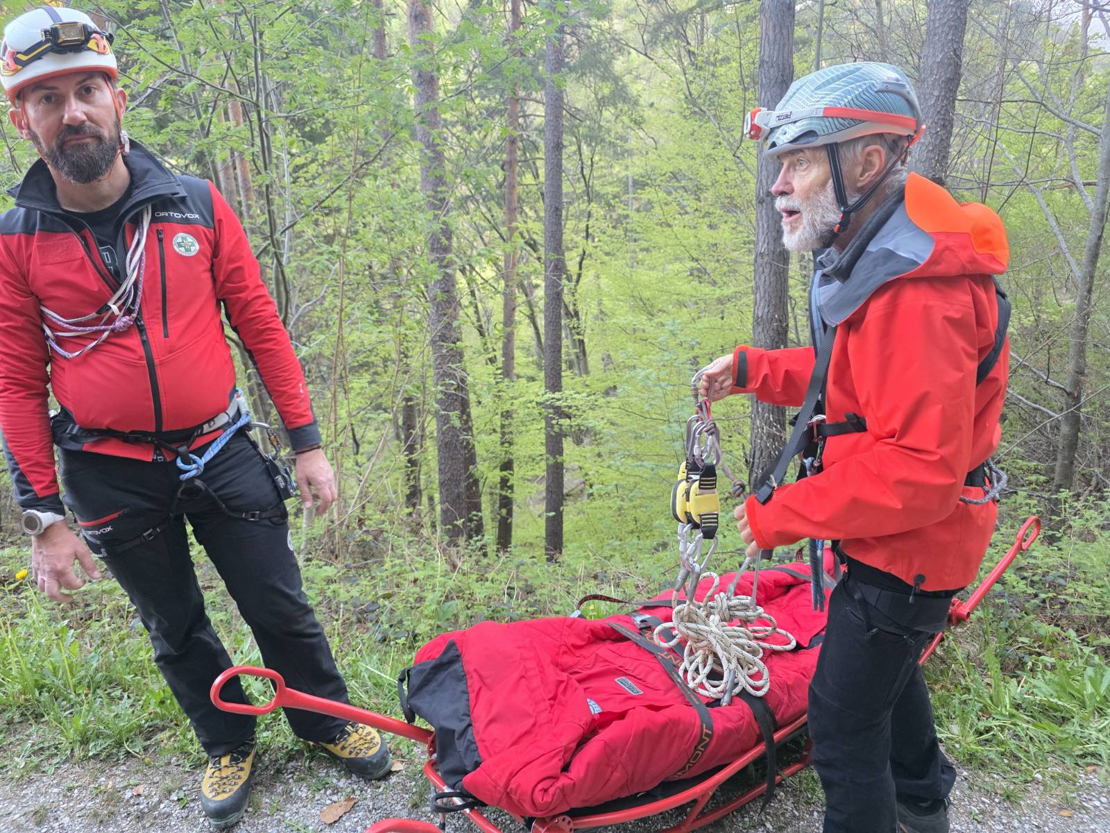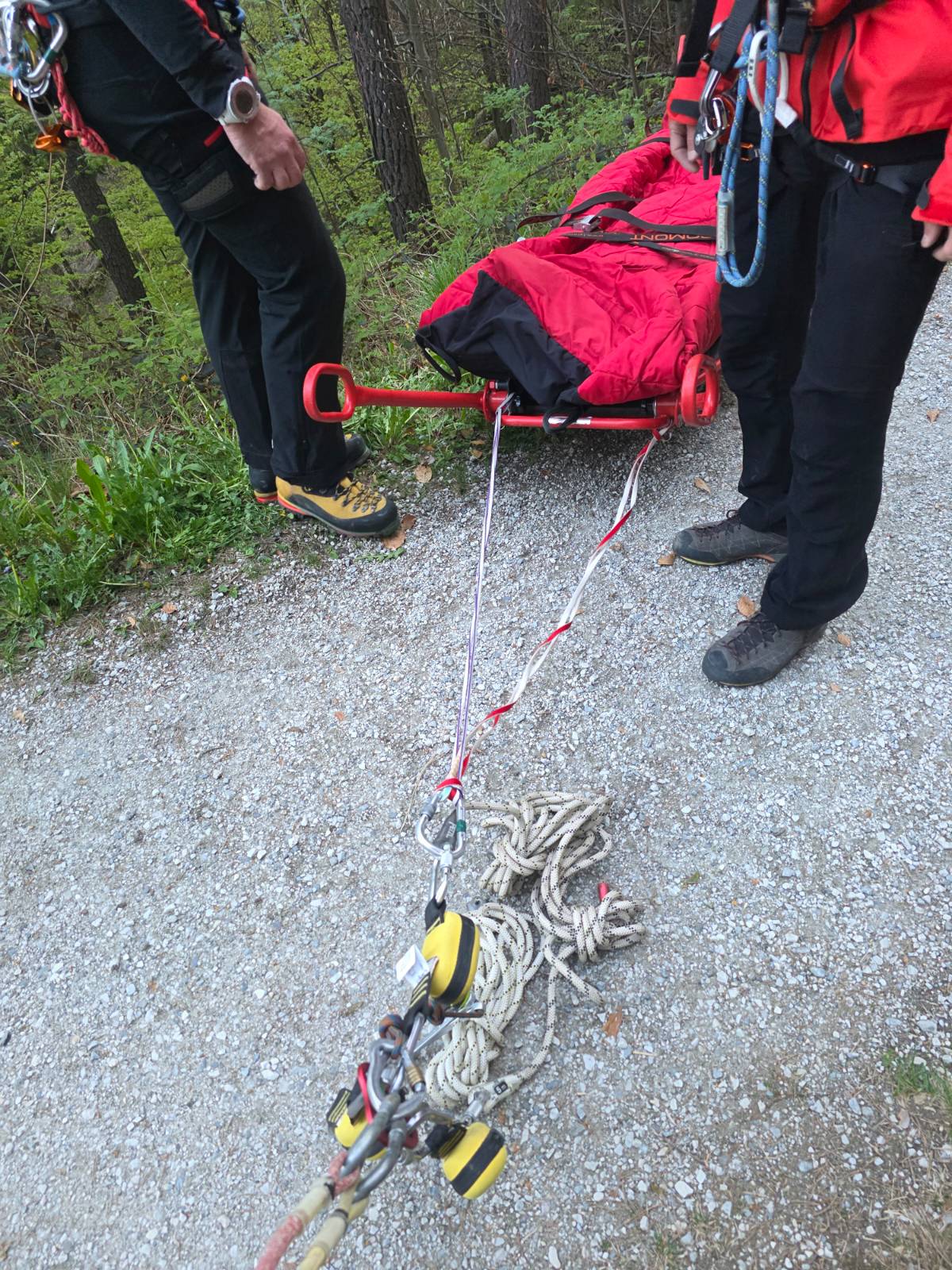 Die Mannschaft wurde in zwei Teams aufgeteilt, um die unterschiedlichen Aufgaben parallel zu lösen. Ein Team übernahm die Versorgung des Schwerverletzten und barg ihn rasch nach oben auf den Weg. Das andere Team kümmerte sich um die Bergung des Kletterers aus der Felswand.