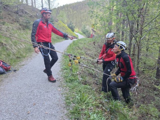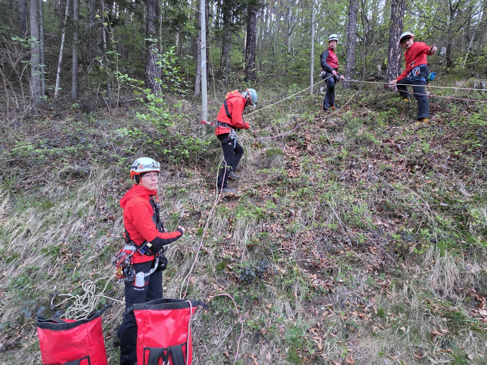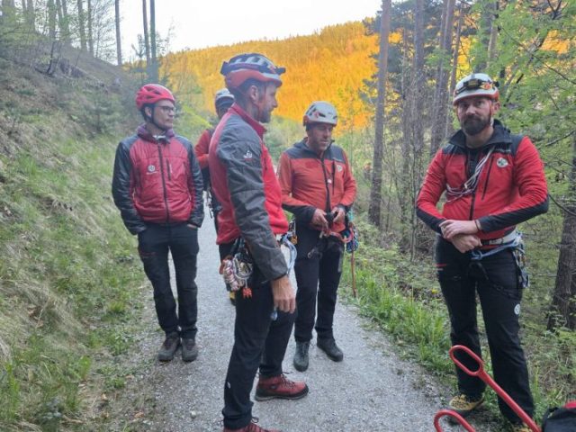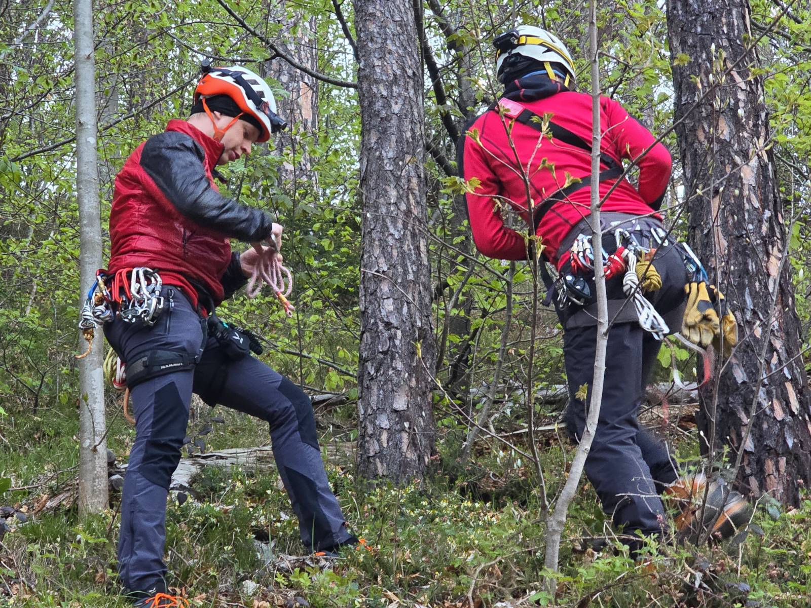 Die Mannschaft wurde in zwei Teams aufgeteilt, um die unterschiedlichen Aufgaben parallel zu lösen. Ein Team übernahm die Versorgung des Schwerverletzten und barg ihn rasch nach oben auf den Weg. Das andere Team kümmerte sich um die Bergung des Kletterers aus der Felswand.