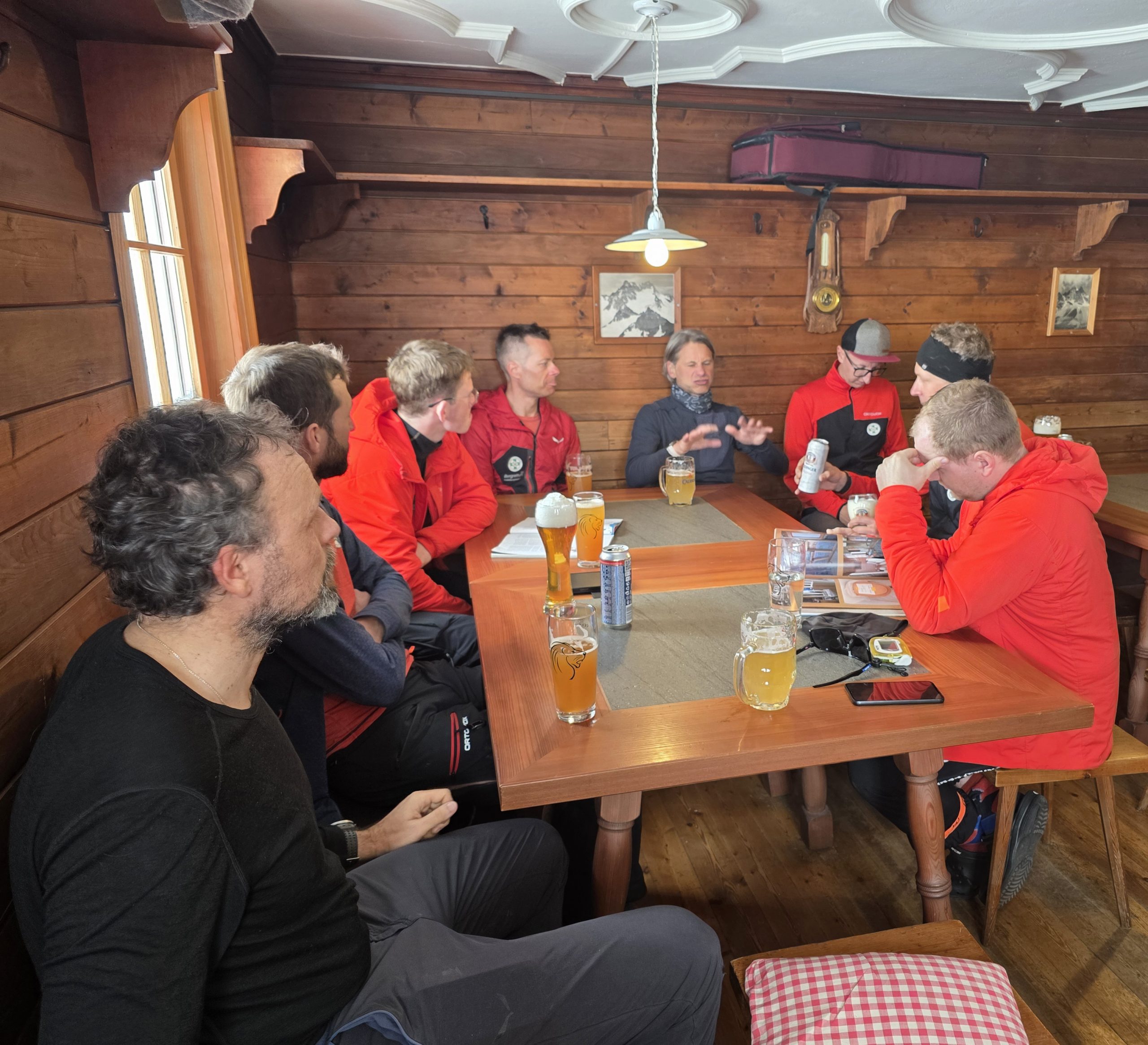 Nach der Ankunft auf der Hütte um die Mittagszeit und einer Stärkung wollten sich einige von uns noch bewegen und nicht die gesamte Zeit in der Hütte verbringen. Trotz schlechter Sicht schnallten sie sich die Skier erneut an und gingen in Richtung Piz Pischa. Nach ein paar Stunden kamen sie mit einem Lächeln im Gesicht zurück. Wie das Bergpanorama dort oben aussieht, konnten sie jedoch nicht sagen. Hauptsache, man war an der frischen Luft.