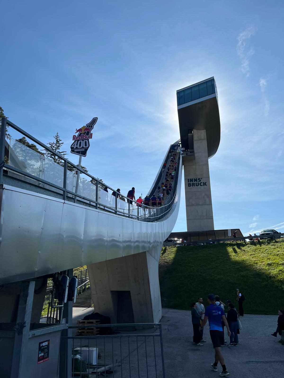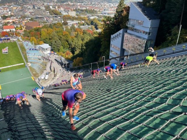 Wieder einmal war es so weit: Mehr als 2.000 Teilnehmer pulten sich an der Bergiselschanze um die schnellste Zeit. Diesmal ging es nicht wie üblich von oben nach unten, sondern von unten nach oben. In Einzel- oder Mannschaftsbewerben mussten die 400 m Richtung Startbacken zurückgelegt werden. Dabei gab es extrem steile Abschnitte, die den Teilnehmern alles abverlangten. Am Rande waren sieben Bergretterinnen und Bergretter dabei, die vor allem in den steilen Passagen ein waches Auge auf die Sicherheit der Teilnehmenden hatten. Glücklicherweise ist nichts passiert und der Tag verlief ohne nennenswerte Unfälle.