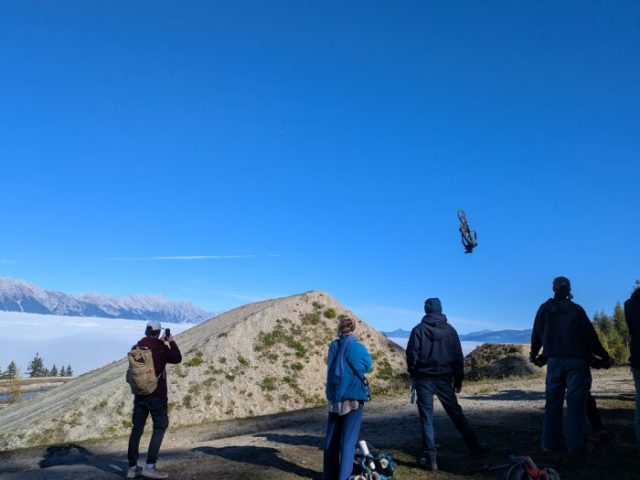 Für den Zweiteiler „Tirolerblut“ mussten MTB-Stuntszenen an den alten Crankworx-Kickern beim Speichersee auf der Muttereralm gedreht werden. Für die Sicherheit im Falle von Unfällen stand die Bergrettung Innsbruck bereit. Da der Vormittag neblig und wolkenverhangen war, musste auch noch den ganzen Nachmittag gedreht werden. Diese Entscheidung war goldrichtig, denn die Wolkendecke sank unterhalb der Location und es konnten traumhafte Bilder für den Film eingefangen werden. Wer Ursula Strauss also in einem weiteren Krimi sehen will, diesmal in den Tiroler Bergen, muss noch warten, bis dieser Film im Fernsehen gesendet wird. Wir hatten einen langen, aber auch spannenden Ambulanzdienst mit netten Menschen aus einem für uns ganz untypischen Umfeld – danke.